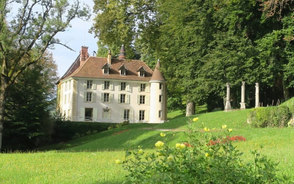 façade de la bâtisse est orientée vers le parc et permet de contempler la chaîne de L’Épine, le Massif des Bauges et sa croix du Nivolet.